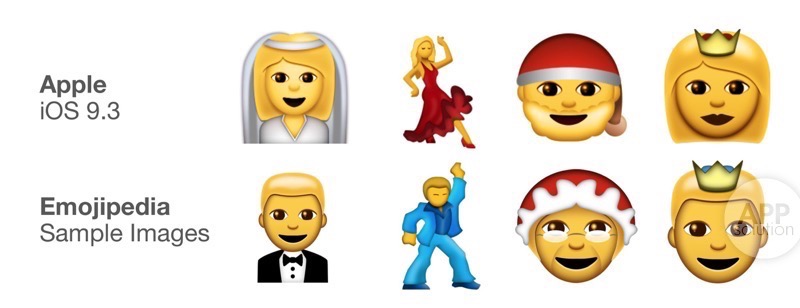 新版emoji 為已有的幾個(gè)人物表情找來(lái)了情侶:新娘的旁邊有了新郎、跳舞的紅裙少女有了男舞伴、公主的身邊站著王子,連金胡子的圣誕老人有了(長(zhǎng)得像狼外婆的)圣誕老奶奶。