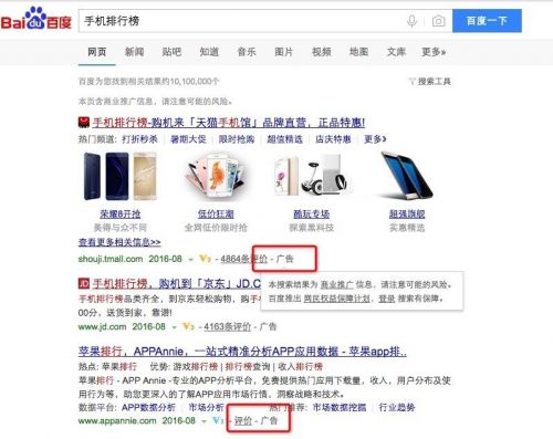 作為受影響最大的百度搜索,TechWeb查詢發(fā)現(xiàn),目前百度的搜索結(jié)果頁(yè)面的廣告樣式已經(jīng)由原來的“商業(yè)推廣”變成“廣告”二字描述了。