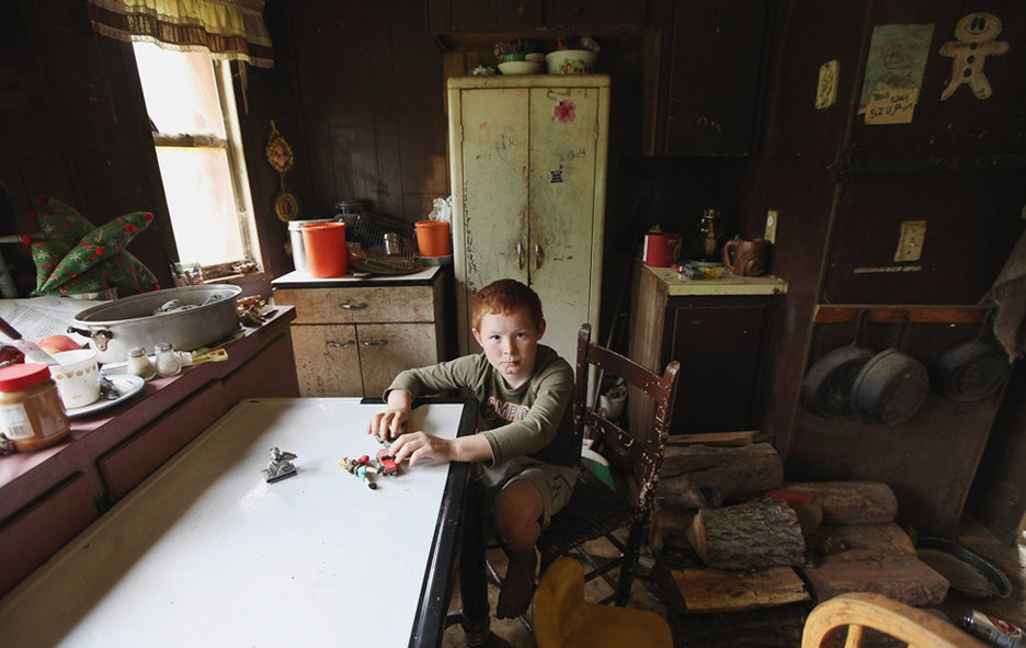 在湯普森堡,在奧斯利縣,在馬格芬縣……靠救濟(jì)金度日、無法接受教育甚至無法擺脫毒癮的美國白人比比皆是,他們的家庭收入平均每年只有 1 萬多美元;他們沒有未來,或者說,他們的未來就是下圖中的樣子。而你們,就不能睜開眼看看嗎?!