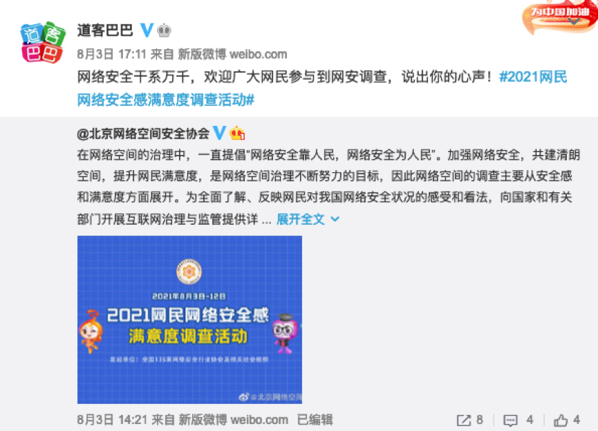 參與開展“2021網(wǎng)民網(wǎng)絡(luò)安全感滿意度調(diào)查活動(dòng)”簡報(bào)