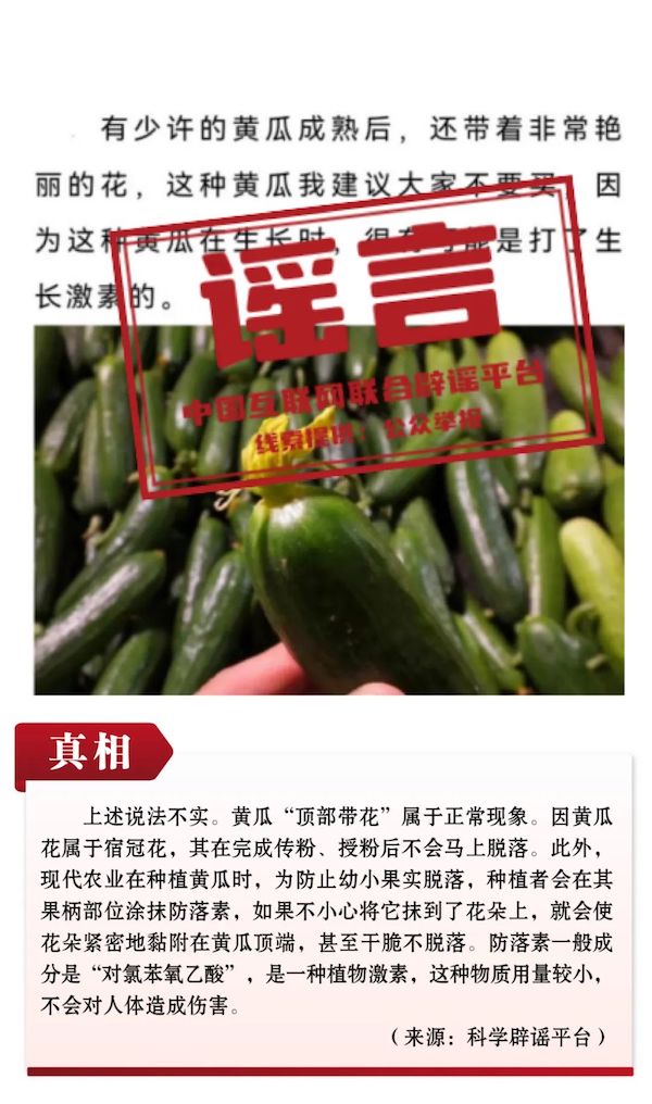 謠言10:黃瓜頂部帶花是因?yàn)榇蛄思に?,不能吃?/strong>